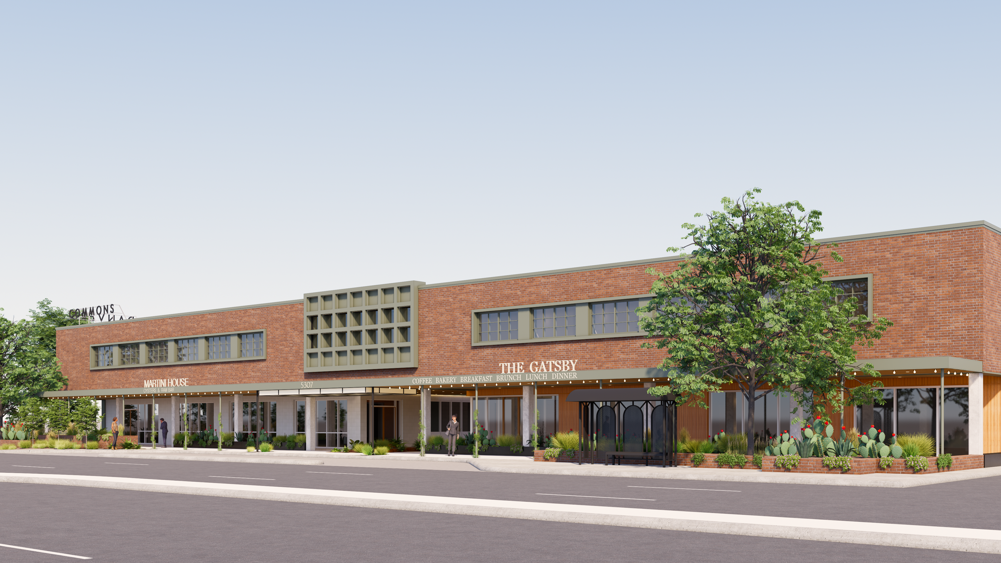 Public realm enhancements include eroding back the existing building facade at the ground level to create outdoor dining spaces along the major streetscape, as well as restoring the original open-air breezeway through the building to create a pedestrian thoroughfare.
