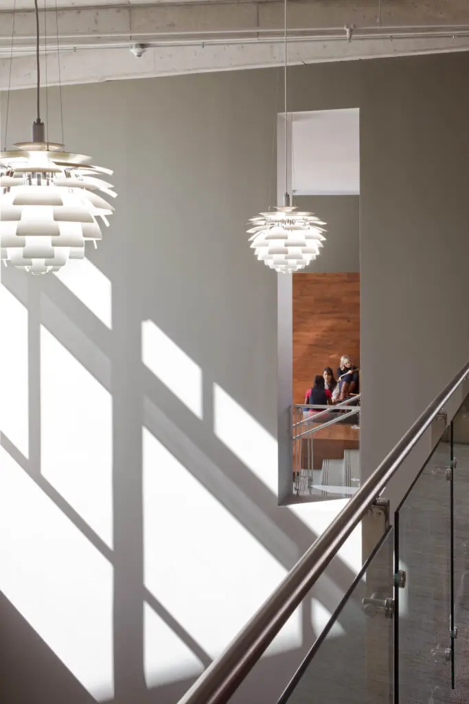 Overland Partners Architects of San Antonio, generated project goals and held design workshops to help meet the needs of the students. Later in development, Studio8 joined the team to finish out the interior design for the building. Studio8 worked to enhance the inside-outside connection by pulling exterior finishes inside or mimicking rhythms. Durability and ease of maintenance were paramount, but material selection was kept very fresh and sophisticated with sparks of surprising color.
